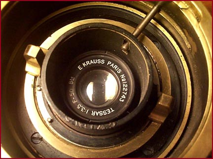 as the rest of the camera. The lens is an E. Krauss No. 122743 Tessar